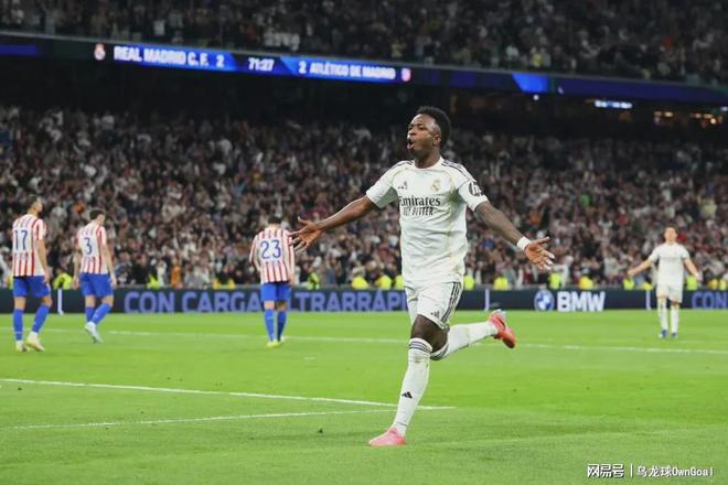 易边再战,第52分钟,卜拉欣-迪亚斯在禁区被放倒,裁判吹罚点球,维尼修斯主罚点球命中扳平比分,皇马1-1马竞。第55分钟,巴尔韦德在禁区抢断皮球后完成破门,皇马2-1反超马竞。