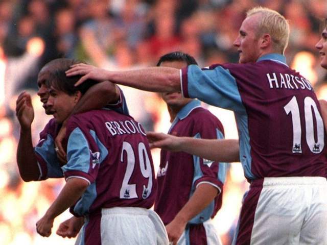 被阿森纳放弃,哈特森并未沉沦。在东伦敦的“铁锤帮”西汉姆联,他迎来了职业生涯的第一个巅峰。没有了艺术家的光环压制,他得以尽情释放骨子里的野性。1997—98赛季,他用15粒联赛进球,向整个英超宣告:即便没有豪门的光环,他依然是这片赛场上最顶级的掠食者。